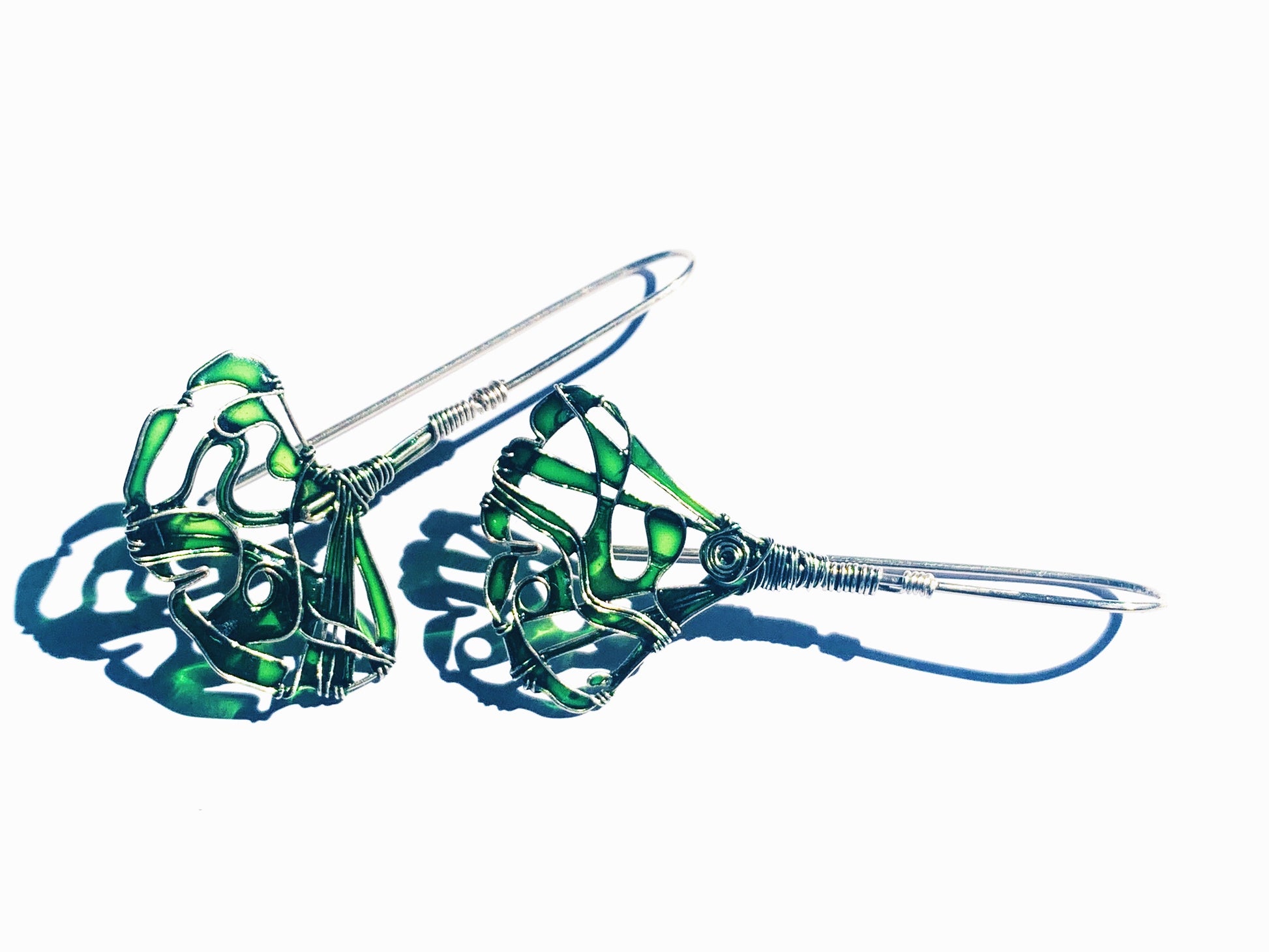 The effect of the Ginkgo earrings is similar to a stained glass window - the appearance of the piece changes with the available light.